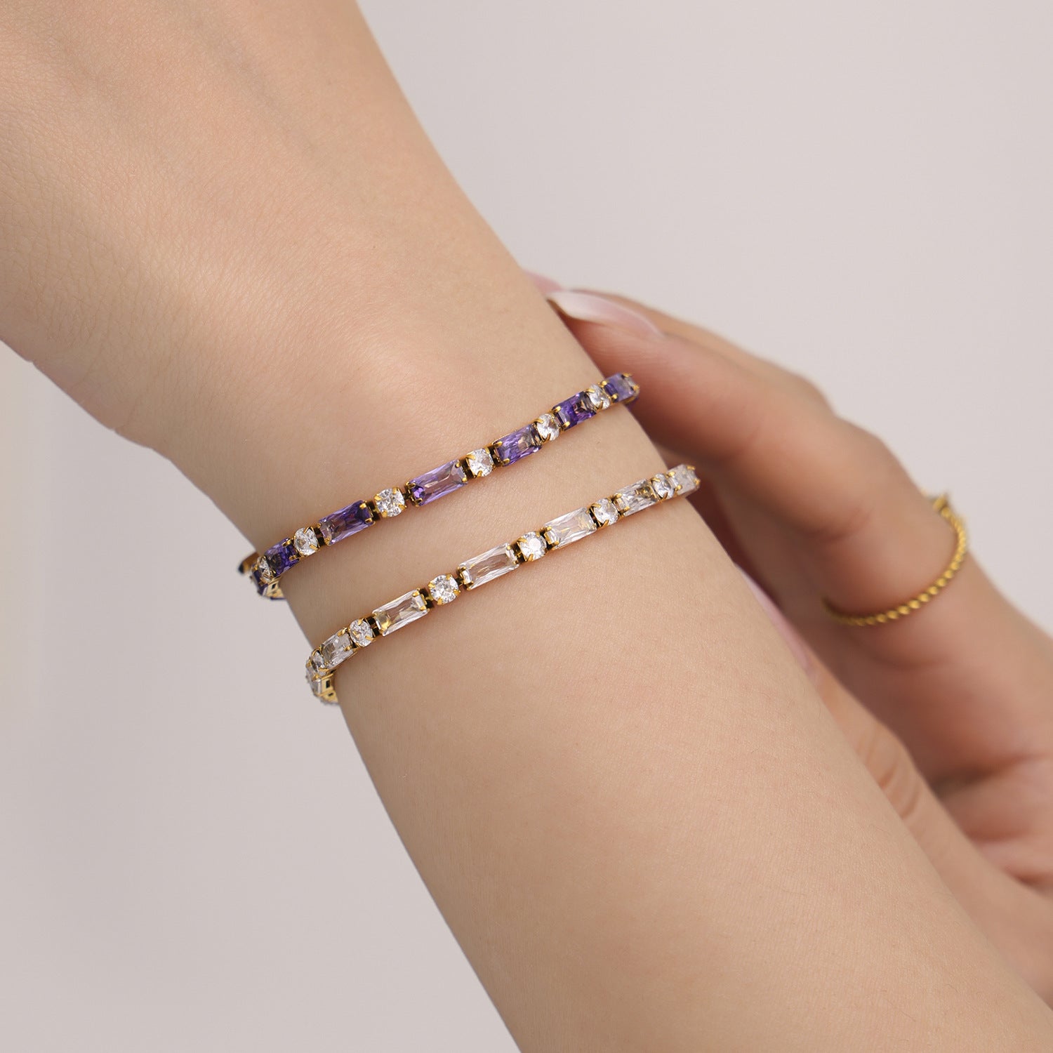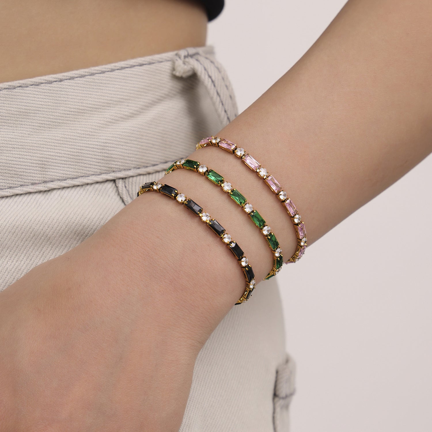 This rectangular color blocked zirconia claw chain bracelet sparkles with colorful light and brings playful yet stylish charm. Delicate zirconia setting with unique claw chain design makes your every move sparkling, perfect accent for daily wear and party look. Easily show your personality and add vigor and fun!
