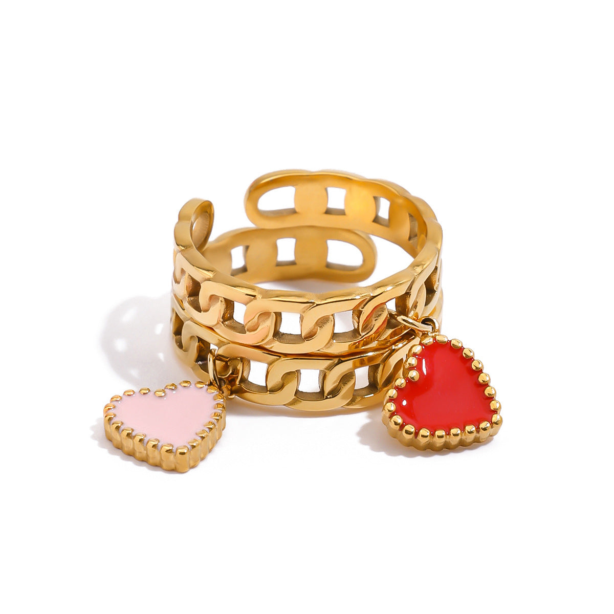 Crafted in shining gold with a passionate red heart suspended between the bands, it’s a tangible symbol of a heartbeat. Your rings will be nestled inside the mini seaside we created just for you: with moss-covered rocks and foaming resin waves—a scene where poetry and romance are preserved.
